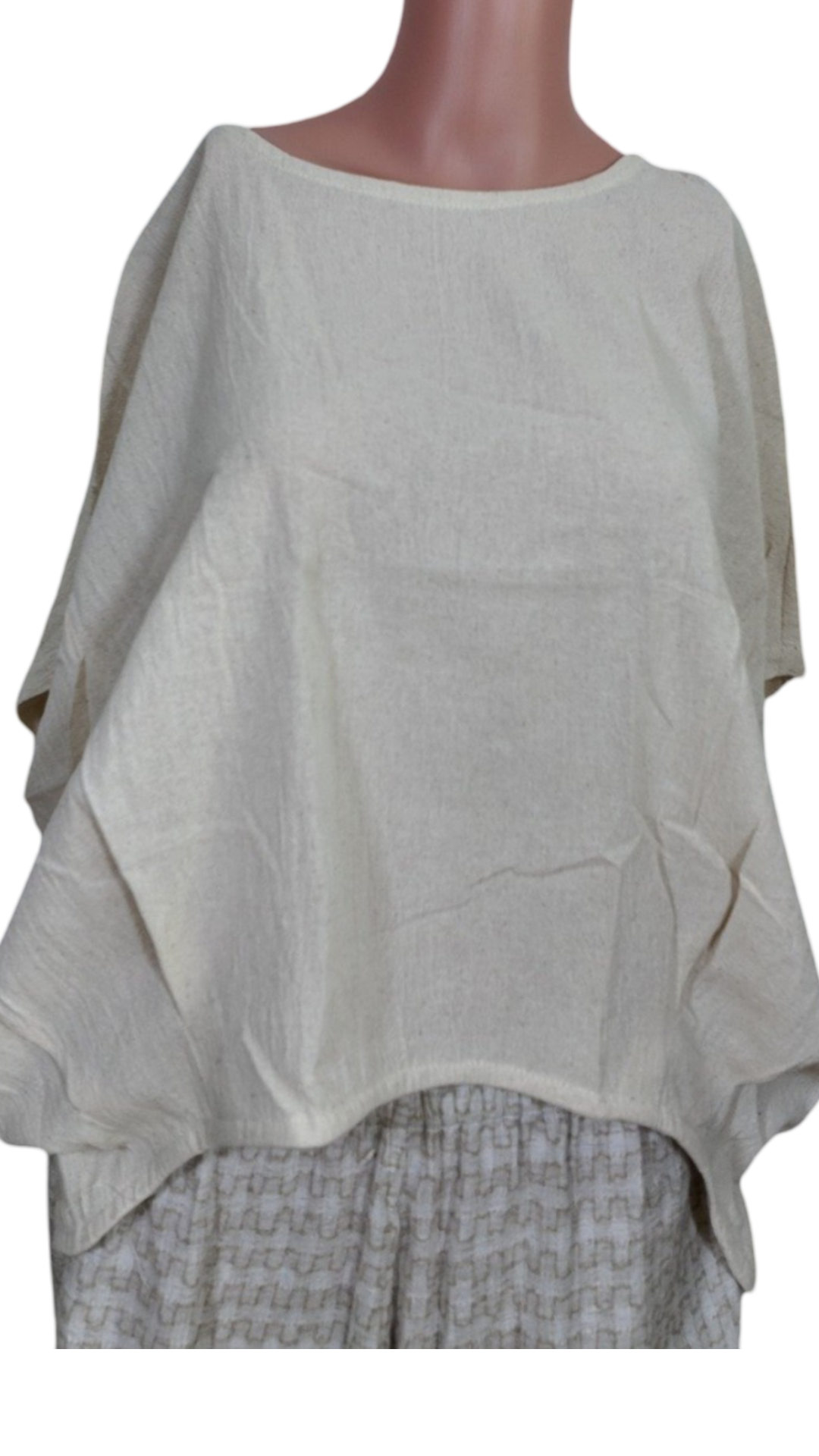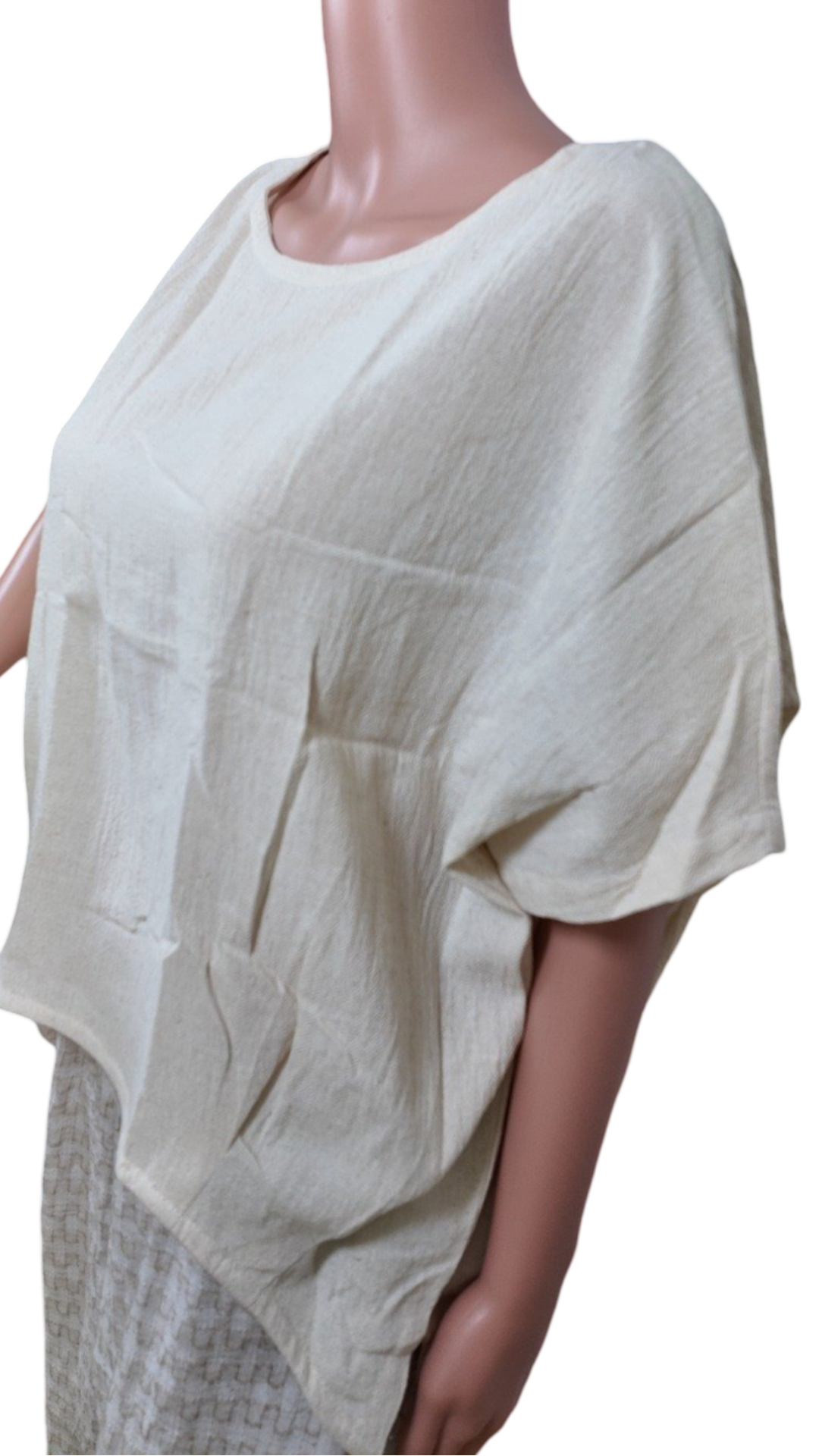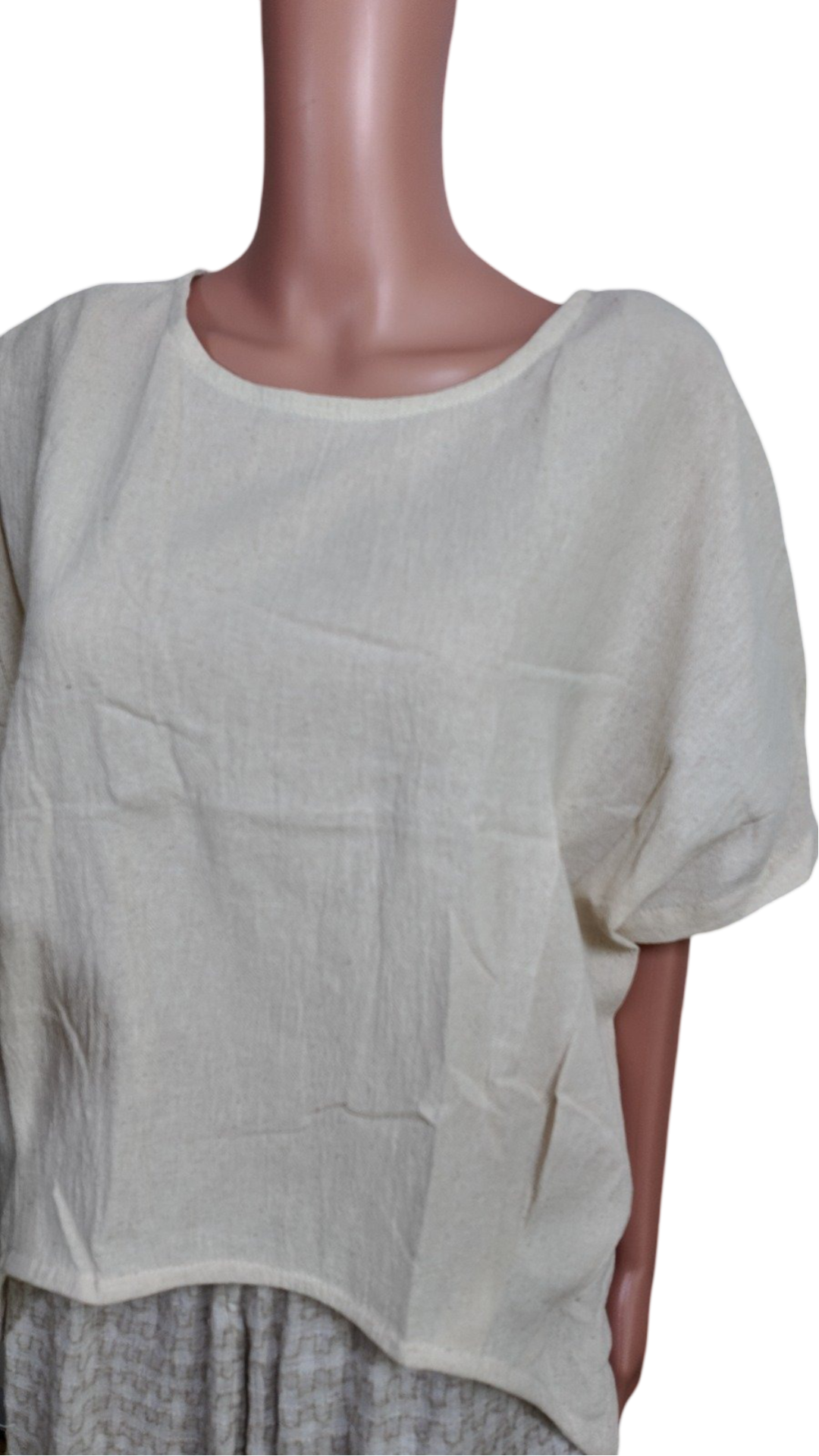 Short Sleeve blouse, with round fancy cut at the bottom, hemp cotton easy to wear outfit with classy styling, feels cooler when worn.