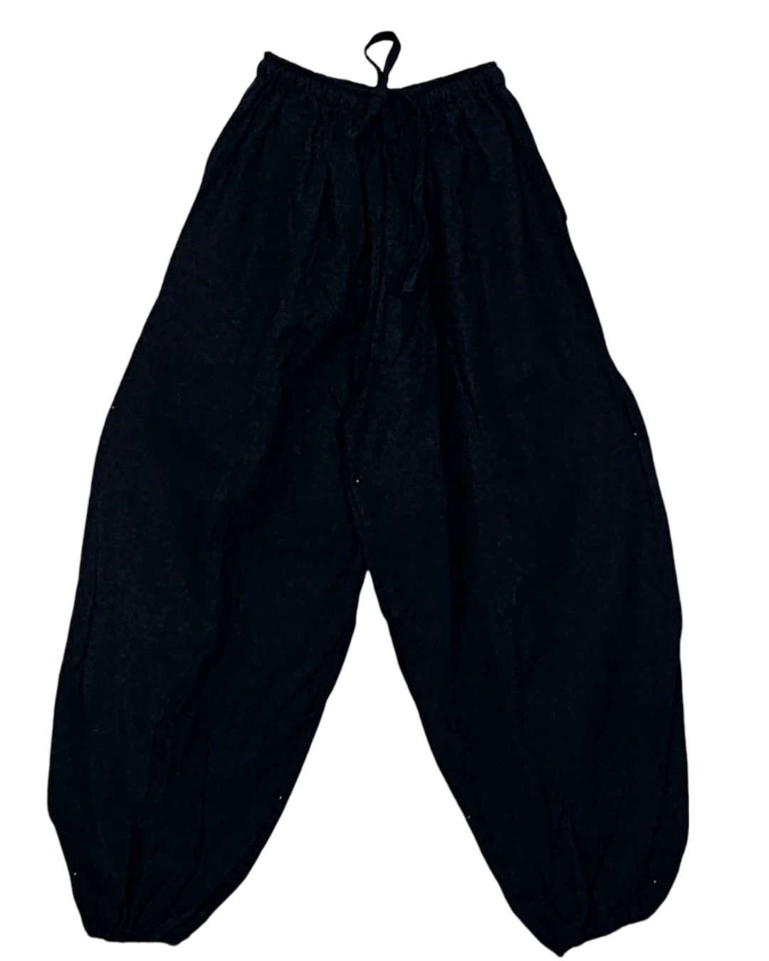 Extra Long Pull Tall Harem Pants in Black, with Elastic Waist and Ankles One Free Size Waist Fits Multiple Sizes from S to XL, Measurements can vary a bit as these are Handmade, Easy-Going Style, Perfect for Outdoor Activities, Yoga or lounging around and travel.